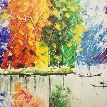 I primarily use high viscosity acrylic paint as my medium, a combination of brushes, palette knives, balled up foil, cotton swabs, and other implements to accentuate texture on my canvas.